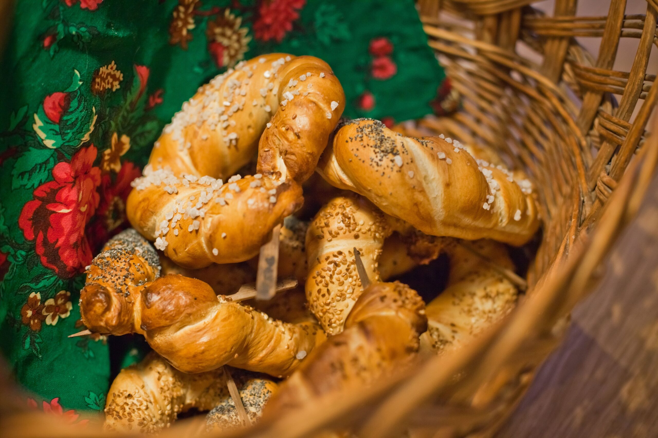 Stolica Małopolski to jedyne miasto w Europie, które na listę produktów regionalnych UE wpisało aż dwa wyroby piekarnicze: chleb prądnicki i obwarzanek. Chleb prądnicki, wypiekany z mąki żytniej na zakwasie, może być okrągły lub podłużny. Cechą charakterystyczną jest jego wielkość: największe bochenki ważą nawet 14 kg. Z kolei obwarzankom, posypywanym solą, makiem lub sezamem, nadaje się kulisty kształt – symbolizuje on koło życia i podobno przynosi szczęście. Warto też wspomnieć o paluszkach krakowskich, wypiekanych już od XIII w. Były wyrabiane ręcznie ze zboża rosnącego w okolicy, a do ich dekoracji używano soli przywiezionej z kopalni w Wieliczce.